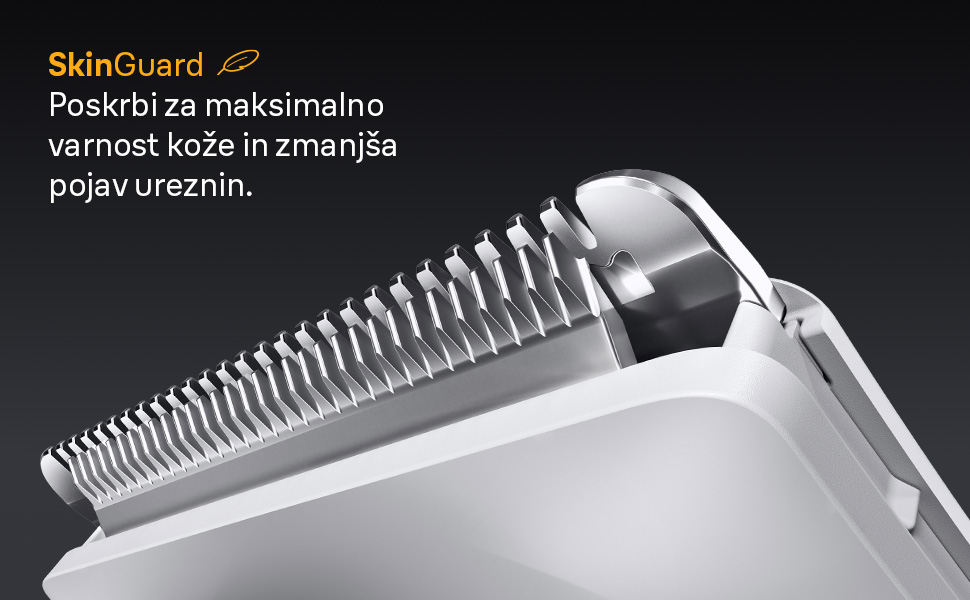 Maksimalna varnost kože: zasnovan s tehnologijo SkinGuard, ki zmanjša pojav ureznin, za varno prirezovanje kjer koli