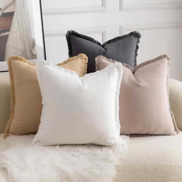 Komplet štirih dekorativnih prevlek za blazine v velikosti 65x65 cm predstavlja praktično in estetsko rešitev za osvežitev videza vaših bivalnih prostorov. Te prevleke so izdelane iz naravnega bombaža, ki zagotavlja visoko stopnjo udobja, zračnosti in odpornosti na vsakodnevno obrabo pri redni uporabi. Zaradi svoje vsestranske zasnove so primerne za namestitev na zofe, postelje, fotelje ali vrtno pohištvo, kjer ustvarijo prijetno in urejeno okolje. Eleganten boho slog s subtilnimi resicami na robovih omogoča enostavno kombiniranje z različnimi notranjimi in zunanjimi slogi opremljanja, od modernega do klasičnega dizajna.
