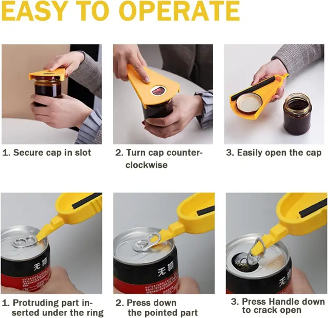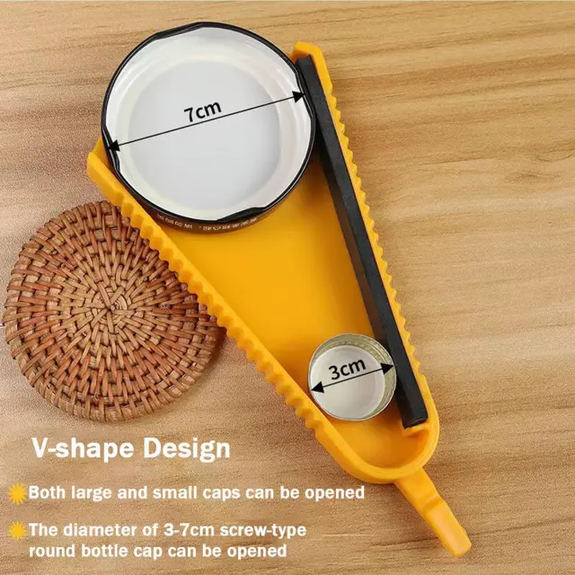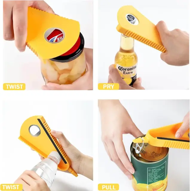 Smart Designed Bottle Opener This bottle opener is a V-shaped multifunctional premium grip, non-slip rubber bar designed to grip all caps and caps (3-7cm in diameter), whether factory sealed, anti-slip Childproof and tamper-proof, it can securely grip jars/can lids or plastic lids such as: water bottles, soda bottles, milk jugs, water bottles, soft drink bottles, plastic cans, and is also suitable for canning.Multifunctional bottle opener 4-in-1 bottle opener design, can easily open (pull ring) cans, pry off beer caps, unscrew various can caps and caps. So it can be called beer opener, bottle opener, can opener and bottle opener. This is a great bottle opener for seniors with arthritis, easy to remove bottle opener.Small and beautiful bottle opener, compact design, only takes up a small part of the cabinet space, can be hung anywhere in the kitchen, ergonomic bottle opener, can even be placed in your pocket, travel anywhere.Easy to use The bottle opener is designed and manufactured using the lever principle, and can open various bottle caps, soda bottle caps, can caps, plastic bottle caps, etc. with just a slight pry or pull or twist. This is a smart bottle opener suitable for arthritis, the elderly, women, children, and the elderly with weak hands.Practical and Convenient Gift The bottle opener insert is a great kitchen gadget for the elderly, elderly, arthritic and those with weak hands. Great gift for women, men, children, father or mother, men and friends.