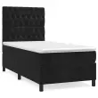 Uporabite to box spring posteljo za uživanje v mirnem spancu! Ponuja maksimalno sprostitev in prijeten spanec. Mehak žamet: Žamet je mehka in razkošna tkanina, ki jo prepoznamo po gostem kupu enakomerno rezanih gladkih vlaken. Žametna tkanina ima značilen mehak občutek, zaradi česar je prijetna na dotik.Praktično vzglavje: Vzglavje postelje je nastavljivo po višini po vaših željah. To vzglavje za posteljo vam zagotavlja odlično oporo za hrbet, ko sedite na postelji in berete ali gledate filme.Ležišče z žepkastimi vzmetmi: Vgrajena individualna žepkasta vzmet je znana po zelo visoki kakovosti, hkrati pa zagotavlja visoko stopnjo vzdržljivosti in prilagodljivosti. Lahko učinkovito absorbira hrup in udarce, ki jih povzročata metanje in obračanje.Srednje trda opora: Posteljna vzmetnica odlično zagotavlja dodatno stabilnost in ravno pravšnjo stopnjo čvrstosti, ne da bi pri tem žrtvovala udobje. Zato je idealna za tiste, ki spijo na hrbtu ali trebuhu.Koži prijazen nadvložek: Zaščita za ležišče ima trpežno in koži prijazno tkanino, zaradi česar je mehka in udobna. Opomba:Zaradi higienskih razlogov vzmetnice ni mogoče vrniti po odstranitvi ali odprtju embalaže.Vsakemu izdelku je priložen priročnik za enostavno sestavljanje.Postelja:Barva: ČrnaMaterial: Žamet (100 % poliester), vezan les, konstruiran lesDimenzije: 203 x 90 x 118/128 cm (D x Š x V)Vzmetnica za posteljo:Barva: Bela in črnaMaterial: Žamet (100 % poliester)Material polnila: Žepkaste vzmeti, penaDimenzije: 90 x 200 x 20 cm (Š x D x V)Nadvložek:Barva: BelaMaterial nadvložka: Blago (100 % poliester)Material polnila: PenaDimenzije: 90 x 200 x 5 cm (Š x D x V)Paket vsebuje:1 x Posteljni okvir1 x Vzglavje1 x Vzmetnica1 x Nadvložek