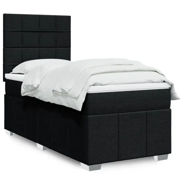 Uporabite to posteljo za uživanje v mirnem spancu! Ponuja maksimalno sprostitev in prijeten spanec. Mehak in trpežen material: Tkanina iz poliestra združuje mehkobo, zračnost in trpežnost ter vam zagotavlja popolno udobje in prijetnost.Ležišče z žepkastimi vzmetmi: Ta vzmetnica z žepkastimi vzmetmi ima posamezne žepkaste vzmeti, ki delujejo neodvisno in zagotavljajo prilagojeno podporo, saj se odzivajo le na pritisk na posameznem območju. Takšna zasnova preprečuje, da bi se ležišče "zvijalo skupaj"; in zmanjšuje prenos gibanja v primerjavi s tradicionalnimi ležišči z odprtimi vzmetmi. Vsaka žepkasta vzmet podpira telo posebej.Nastavljiva višina vzglavja: Višina vzglavja je nastavljiva po vaših željah.Udobna vzmetnica: Ta nadvložek za vzmetnico z mehko in zračno površino poveča podporo in udobje ter hkrati podaljša življenjsko dobo vaše vzmetnice. Odstranljiva prevleka omogoča enostavno pranje, zato je vzdrževanje enostavno.Letvice za optimalno podporo: Okvir postelje je opremljen z letvicami, ki zagotavljajo osnovno podporo in zračnost vašega ležišča. Dobro je vedeti:Zaradi higienskih razlogov vzmetnice ni mogoče vrniti po odstranitvi ali odprtju embalaže.Posteljni okvir z vzglavjem:Barva: ČrnaMaterial: Blago (100 % poliester), vezan les, konstruiran lesDimenzije: 190 x 90 x 140,5/150,5 cm (D x Š x V)Utrjene plastične nogicePotrebno sestavljanje: DaVzmetnica:Barva: Bela in črnaMaterial: Blago (100 % poliester)Material polnila: Žepkaste vzmeti, penaTrdnost: SrednjaDimenzije: 90 x 190 x 20 cm (Š x D x V)Nadvzmetnica:Barva: BelaMaterial: Blago (100 % poliester)Material polnila: PenaDimenzije: 90 x 190 x 5 cm (Š x D x V)Odstranljiva in pralna prevlekaPaket vsebuje:1 x Posteljni okvir1 x Vzglavje1 x Vzmetnica1 x Nadvložek