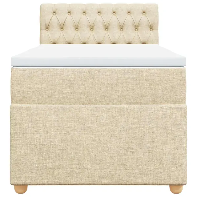 Uporabite to posteljo za uživanje v mirnem spancu! Ponuja maksimalno sprostitev in prijeten spanec. Mehak in trpežen material: Tkanina iz poliestra združuje mehkobo, zračnost in trpežnost ter vam zagotavlja popolno udobje in prijetnost.Ležišče z žepkastimi vzmetmi: Ta vzmetnica z žepkastimi vzmetmi ima posamezne žepkaste vzmeti, ki delujejo neodvisno in zagotavljajo prilagojeno podporo, saj se odzivajo le na pritisk na posameznem območju. Takšna zasnova preprečuje, da bi se ležišče "zvijalo skupaj"; in zmanjšuje prenos gibanja v primerjavi s tradicionalnimi ležišči z odprtimi vzmetmi. Vsaka žepkasta vzmet podpira telo posebej.Udobna vzmetnica: Ta nadvložek za vzmetnico z mehko in zračno površino poveča podporo in udobje ter hkrati podaljša življenjsko dobo vaše vzmetnice. Odstranljiva prevleka omogoča enostavno pranje, zato je vzdrževanje enostavno.Letvice za optimalno podporo: Okvir postelje je opremljen z letvicami, ki zagotavljajo osnovno podporo in zračnost vašega ležišča. Dobro je vedeti:Zaradi higienskih razlogov vzmetnice ni mogoče vrniti po odstranitvi ali odprtju embalaže.Posteljni okvir z vzglavjem:Barva: KremMaterial: Blago (100 % poliester), vezan les, konstruiran lesDimenzije: 200 x 80 x 100,5 cm (D x Š x V)Utrjene plastične nogicePotrebno sestavljanje: DaVzmetnica:Barva: Bela in kremnaMaterial: Blago (100 % poliester)Material polnila: Žepkaste vzmeti, penaTrdnost: SrednjaDimenzije: 80 x 200 x 20 cm (Š x D x V)Nadvzmetnica:Barva: BelaMaterial: Blago (100 % poliester)Material polnila: PenaDimenzije: 80 x 200 x 5 cm (Š x D x V)Odstranljiva in pralna prevlekaPaket vsebuje:1 x Posteljni okvir1 x Vzglavje1 x Vzmetnica1 x Nadvložek