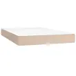 Uporabite to box spring posteljo za uživanje v mirnem spancu! Ponuja maksimalno sprostitev in prijeten spanec. Trpežno umetno usnje: Vrhunsko umetno usnje je zelo vzdržljiv material. Je odporno na madeže, zato ga lahko preprosto čistite z vlažno krpo. Gladka površina mu prav tako daje razkošen videz in lepoto pravega usnja.Ležišče z žepkastimi vzmetmi: Vgrajena individualna žepkasta vzmet je znana po zelo visoki kakovosti, hkrati pa zagotavlja visoko stopnjo vzdržljivosti in prilagodljivosti. Lahko učinkovito absorbira hrup in udarce, ki jih povzročata metanje in obračanje.Srednje trda opora: Posteljna vzmetnica odlično zagotavlja dodatno stabilnost in ravno pravšnjo stopnjo čvrstosti, ne da bi pri tem žrtvovala udobje. Zato je idealna za tiste, ki spijo na hrbtu ali trebuhu.Koži prijazen nadvložek: Zaščita za ležišče ima trpežno in koži prijazno tkanino, zaradi česar je mehka in udobna.Letvice iz vezanega lesa: Postelja ima letvice iz vezanega lesa, ki omogočajo dobro porazdelitev teže in zagotavljajo, da vzmetnica ostane na mestu ob vsakem zasuku in obračanju med spanjem. Opomba:Zaradi higienskih razlogov vzmetnice ni mogoče vrniti po odstranitvi ali odprtju embalaže.Vsakemu izdelku je priložen priročnik za enostavno sestavljanje.Posteljni okvir:Barva: KapučinoMaterial: Umetno usnje (75 % polivinilklorid, 5 % bombaž, 20 % poliester), vezan les, konstruiran lesDimenzije: 203 x 120 x 35 cm (D x Š x V)Vzmetnica za posteljo:Barva: Bela in kapučinoMaterial: Umetno usnje (75 % polivinilklorid, 5 % bombaž, 20 % poliester)Material polnila: Žepkaste vzmeti, penaDimenzije: 120 x 200 x 20 cm (Š x D x V)Nadvložek:Barva: BelaMaterial nadvložka: Blago (100 % poliester)Material polnila: PenaDimenzije: 120 x 200 x 5 cm (D x Š x V)Paket vsebuje:1 x Posteljni okvir1 x Vzmetnica1 x Nadvložek