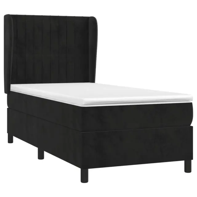 Uporabite to box spring posteljo za uživanje v mirnem spancu! Ponuja maksimalno sprostitev in prijeten spanec. Mehak žamet: Žamet je mehka in razkošna tkanina, ki jo prepoznamo po gostem kupu enakomerno rezanih gladkih vlaken. Žametna tkanina ima značilen mehak občutek, zaradi česar je prijetna na dotik.Praktično vzglavje: Vzglavje postelje je nastavljivo po višini po vaših željah. To vzglavje za posteljo vam zagotavlja odlično oporo za hrbet, ko sedite na postelji in berete ali gledate filme.Ležišče z žepkastimi vzmetmi: Vgrajena individualna žepkasta vzmet je znana po zelo visoki kakovosti, hkrati pa zagotavlja visoko stopnjo vzdržljivosti in prilagodljivosti. Lahko učinkovito absorbira hrup in udarce, ki jih povzročata metanje in obračanje.Srednje trda opora: Posteljna vzmetnica odlično zagotavlja dodatno stabilnost in ravno pravšnjo stopnjo čvrstosti, ne da bi pri tem žrtvovala udobje. Zato je idealna za tiste, ki spijo na hrbtu ali trebuhu.Koži prijazen nadvložek: Zaščita za ležišče ima trpežno in koži prijazno tkanino, zaradi česar je mehka in udobna. Opomba:Zaradi higienskih razlogov vzmetnice ni mogoče vrniti po odstranitvi ali odprtju embalaže.Vsakemu izdelku je priložen priročnik za enostavno sestavljanje.Postelja:Barva: ČrnaMaterial: Žamet (100 % poliester), trden macesnov les, vezan les, inženirski lesDimenzije: 203 x 93 x 118/128 cm (D x Š x V)Vzmetnica za posteljo:Barva: Bela in črnaMaterial: Žamet (100 % poliester)Material polnila: Žepkaste vzmeti, penaDimenzije: 90 x 200 x 20 cm (Š x D x V)Nadvložek:Barva: BelaMaterial nadvložka: Blago (100 % poliester)Material polnila: PenaDimenzije: 90 x 200 x 5 cm (Š x D x V)Paket vsebuje:1 x Posteljni okvir1 x Vzglavje z ušesi1 x Vzmetnica1 x Nadvložek