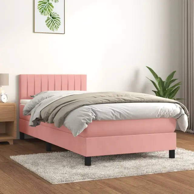 Box spring postelja - Vzmetna postelja z vzmetnico roza 100x200 cm žamet SL6942