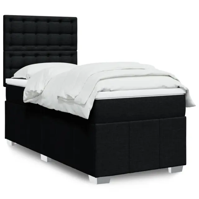 Box spring postelja - Vzmetna postelja z vzmetnico črn 90x190 cm blago SL5446