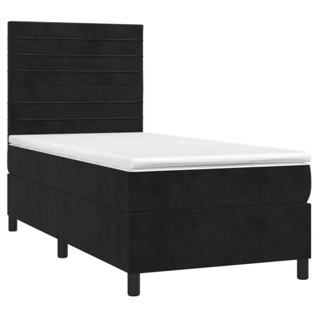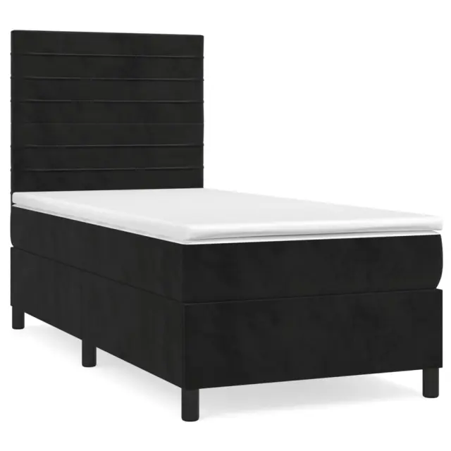 Box spring postelja - Vzmetna postelja z vzmetnico črna 90x200 cm žamet SL646