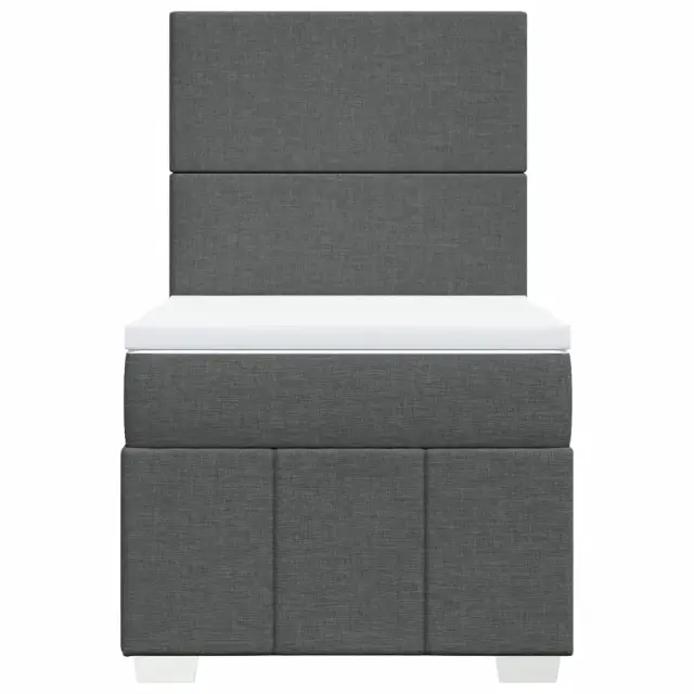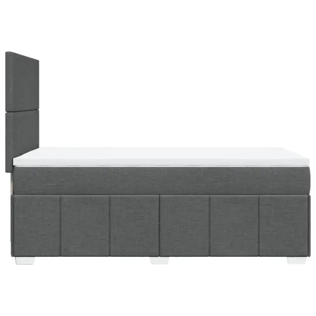 Uporabite to posteljo za uživanje v mirnem spancu! Ponuja maksimalno sprostitev in prijeten spanec. Mehak in trpežen material: Tkanina iz poliestra združuje mehkobo, zračnost in trpežnost ter vam zagotavlja popolno udobje in prijetnost.Ležišče z žepkastimi vzmetmi: Ta vzmetnica z žepkastimi vzmetmi ima posamezne žepkaste vzmeti, ki delujejo neodvisno in zagotavljajo prilagojeno podporo, saj se odzivajo le na pritisk na posameznem območju. Takšna zasnova preprečuje, da bi se ležišče "zvijalo skupaj"; in zmanjšuje prenos gibanja v primerjavi s tradicionalnimi ležišči z odprtimi vzmetmi. Vsaka žepkasta vzmet podpira telo posebej.Nastavljiva višina vzglavja: Višina vzglavja je nastavljiva po vaših željah.Udobna vzmetnica: Ta nadvložek za vzmetnico z mehko in zračno površino poveča podporo in udobje ter hkrati podaljša življenjsko dobo vaše vzmetnice. Odstranljiva prevleka omogoča enostavno pranje, zato je vzdrževanje enostavno.Letvice za optimalno podporo: Okvir postelje je opremljen z letvicami, ki zagotavljajo osnovno podporo in zračnost vašega ležišča. Dobro je vedeti:Zaradi higienskih razlogov vzmetnice ni mogoče vrniti po odstranitvi ali odprtju embalaže.Posteljni okvir z vzglavjem:Barva: Temno sivaMaterial: Blago (100 % poliester), vezan les, konstruiran lesDimenzije: 190 x 90 x 140,5/150,5 cm (D x Š x V)Utrjene plastične nogicePotrebno sestavljanje: DaVzmetnica:Barva: Bela in temno sivaMaterial: Blago (100 % poliester)Material polnila: Žepkaste vzmeti, penaTrdnost: SrednjaDimenzije: 90 x 190 x 20 cm (Š x D x V)Nadvzmetnica:Barva: BelaMaterial: Blago (100 % poliester)Material polnila: PenaDimenzije: 90 x 190 x 5 cm (Š x D x V)Odstranljiva in pralna prevlekaPaket vsebuje:1 x Posteljni okvir1 x Vzglavje1 x Vzmetnica1 x Nadvložek