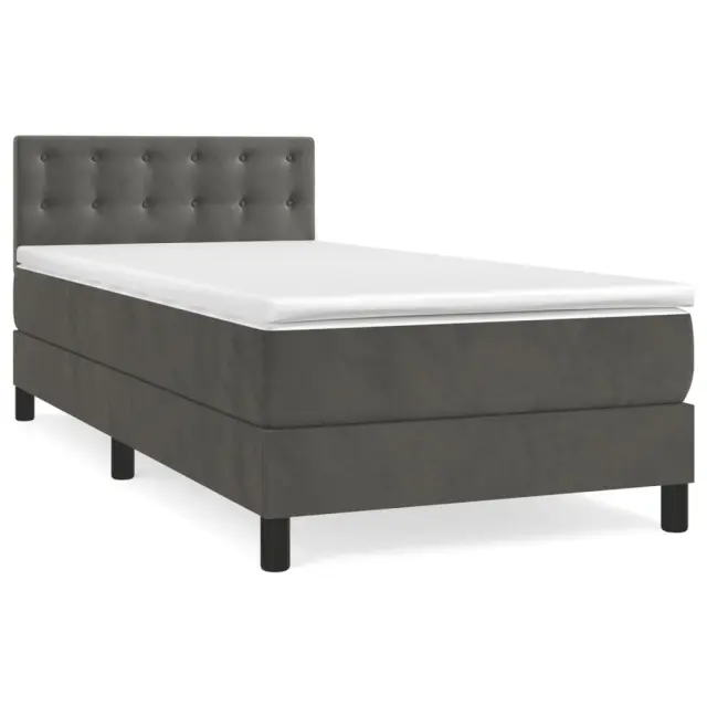 Box spring postelja - Vzmetna postelja z vzmetnico temno siva 80x200 cm žamet SL22814