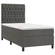 Uporabite to box spring posteljo za uživanje v mirnem spancu! Ponuja maksimalno sprostitev in prijeten spanec. Mehak žamet: Žamet je mehka in razkošna tkanina, ki jo prepoznamo po gostem kupu enakomerno rezanih gladkih vlaken. Žametna tkanina ima značilen mehak občutek, zaradi česar je prijetna na dotik.Praktično vzglavje: Vzglavje postelje je nastavljivo po višini po vaših željah. To vzglavje za posteljo vam zagotavlja odlično oporo za hrbet, ko sedite na postelji in berete ali gledate filme.Ležišče z žepkastimi vzmetmi: Vgrajena individualna žepkasta vzmet je znana po zelo visoki kakovosti, hkrati pa zagotavlja visoko stopnjo vzdržljivosti in prilagodljivosti. Lahko učinkovito absorbira hrup in udarce, ki jih povzročata metanje in obračanje.Srednje trda opora: Posteljna vzmetnica odlično zagotavlja dodatno stabilnost in ravno pravšnjo stopnjo čvrstosti, ne da bi pri tem žrtvovala udobje. Zato je idealna za tiste, ki spijo na hrbtu ali trebuhu.Koži prijazen nadvložek: Zaščita za ležišče ima trpežno in koži prijazno tkanino, zaradi česar je mehka in udobna. Opomba:Zaradi higienskih razlogov vzmetnice ni mogoče vrniti po odstranitvi ali odprtju embalaže.Vsakemu izdelku je priložen priročnik za enostavno sestavljanje.Postelja:Barva: Temno sivaMaterial: Žamet (100 % poliester), vezan les, konstruiran lesDimenzije: 203 x 100 x 118/128 cm (D x Š x V)Vzmetnica za posteljo:Barva: Bela in temno sivaMaterial: Žamet (100 % poliester)Material polnila: Žepkaste vzmeti, penaDimenzije: 100 x 200 x 20 cm (Š x D x V)Nadvložek:Barva: BelaMaterial nadvložka: Blago (100 % poliester)Material polnila: PenaDimenzije: 100 x 200 x 5 cm (Š x D x V)Paket vsebuje:1 x Posteljni okvir1 x Vzglavje1 x Vzmetnica1 x Nadvložek
