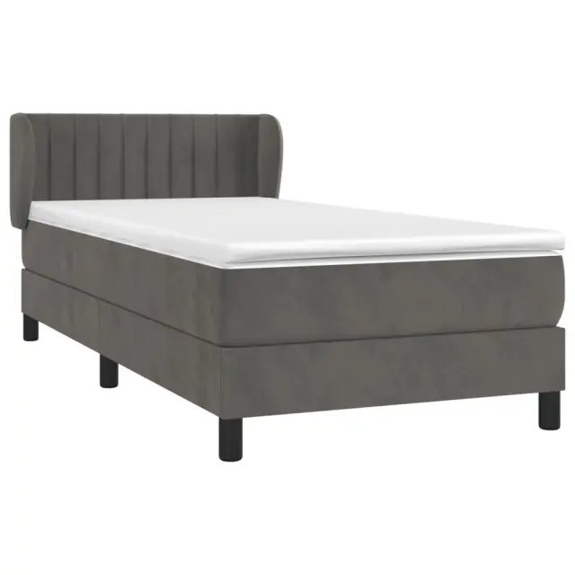Box spring postelja - Vzmetna postelja z vzmetnico temno siv 90x190 cm žamet SL20536