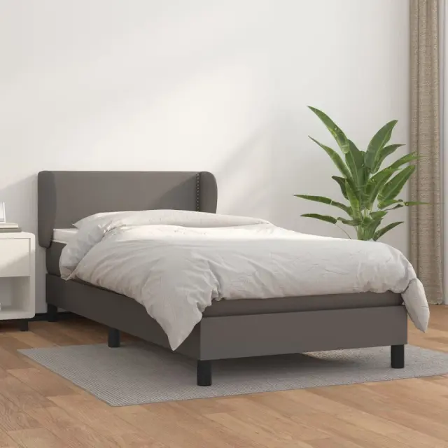 Box spring postelja - Vzmetna postelja z vzmetnico siva 80x200 cm umetno usnje SL20383