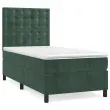 Uporabite to box spring posteljo za uživanje v mirnem spancu! Ponuja maksimalno sprostitev in prijeten spanec. Mehak žamet: Žamet je mehka in razkošna tkanina, ki jo prepoznamo po gostem kupu enakomerno rezanih gladkih vlaken. Žametna tkanina ima značilen mehak občutek, zaradi česar je prijetna na dotik.Praktično vzglavje: Vzglavje postelje je nastavljivo po višini po vaših željah. To vzglavje za posteljo vam zagotavlja odlično oporo za hrbet, ko sedite na postelji in berete ali gledate filme.Ležišče z žepkastimi vzmetmi: Vgrajena individualna žepkasta vzmet je znana po zelo visoki kakovosti, hkrati pa zagotavlja visoko stopnjo vzdržljivosti in prilagodljivosti. Lahko učinkovito absorbira hrup in udarce, ki jih povzročata metanje in obračanje.Srednje trda opora: Posteljna vzmetnica odlično zagotavlja dodatno stabilnost in ravno pravšnjo stopnjo čvrstosti, ne da bi pri tem žrtvovala udobje. Zato je idealna za tiste, ki spijo na hrbtu ali trebuhu.Koži prijazen nadvložek: Zaščita za ležišče ima trpežno in koži prijazno tkanino, zaradi česar je mehka in udobna. Opomba:Zaradi higienskih razlogov vzmetnice ni mogoče vrniti po odstranitvi ali odprtju embalaže.Vsakemu izdelku je priložen priročnik za enostavno sestavljanje.Postelja:Barva: Temno zelenaMaterial: Žamet (100 % poliester), vezan les, konstruiran lesDimenzije: 203 x 80 x 118/128 cm (D x Š x V)Vzmetnica za posteljo:Barva: Bela in temno zelenaMaterial: Žamet (100 % poliester)Material polnila: Žepkaste vzmeti, penaDimenzije: 80 x 200 x 20 cm (Š x D x V)Nadvložek:Barva: BelaMaterial nadvložka: Blago (100 % poliester)Material polnila: PenaDimenzije: 80 x 200 x 5 cm (Š x D x V)Paket vsebuje:1 x Posteljni okvir1 x Vzglavje1 x Vzmetnica1 x Nadvložek