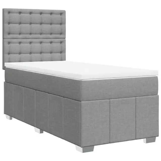 Uporabite to posteljo za uživanje v mirnem spancu! Ponuja maksimalno sprostitev in prijeten spanec. Mehak in trpežen material: Tkanina iz poliestra združuje mehkobo, zračnost in trpežnost ter vam zagotavlja popolno udobje in prijetnost.Ležišče z žepkastimi vzmetmi: Ta vzmetnica z žepkastimi vzmetmi ima posamezne žepkaste vzmeti, ki delujejo neodvisno in zagotavljajo prilagojeno podporo, saj se odzivajo le na pritisk na posameznem območju. Takšna zasnova preprečuje, da bi se ležišče "zvijalo skupaj"; in zmanjšuje prenos gibanja v primerjavi s tradicionalnimi ležišči z odprtimi vzmetmi. Vsaka žepkasta vzmet podpira telo posebej.Nastavljiva višina vzglavja: Višina vzglavja je nastavljiva po vaših željah.Udobna vzmetnica: Ta nadvložek za vzmetnico z mehko in zračno površino poveča podporo in udobje ter hkrati podaljša življenjsko dobo vaše vzmetnice. Odstranljiva prevleka omogoča enostavno pranje, zato je vzdrževanje enostavno.Letvice za optimalno podporo: Okvir postelje je opremljen z letvicami, ki zagotavljajo osnovno podporo in zračnost vašega ležišča. Dobro je vedeti:Zaradi higienskih razlogov vzmetnice ni mogoče vrniti po odstranitvi ali odprtju embalaže.Posteljni okvir z vzglavjem:Barva: Svetlo sivaMaterial: Blago (100 % poliester), vezan les, konstruiran lesDimenzije: 200 x 80 x 140,5/150,5 cm (D x Š x V)Utrjene plastične nogicePotrebno sestavljanje: DaVzmetnica:Barva: Bela in svetlo sivaMaterial: Blago (100 % poliester)Material polnila: Žepkaste vzmeti, penaTrdnost: SrednjaDimenzije: 80 x 200 x 20 cm (Š x D x V)Nadvzmetnica:Barva: BelaMaterial: Blago (100 % poliester)Material polnila: PenaDimenzije: 80 x 200 x 5 cm (Š x D x V)Odstranljiva in pralna prevlekaPaket vsebuje:1 x Posteljni okvir1 x Vzglavje1 x Vzmetnica1 x Nadvložek