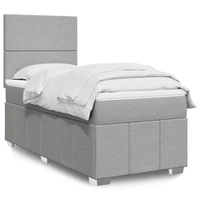 Box spring postelja - Vzmetna postelja z vzmetnico svetlo siva 90x190 cm blago SL17657