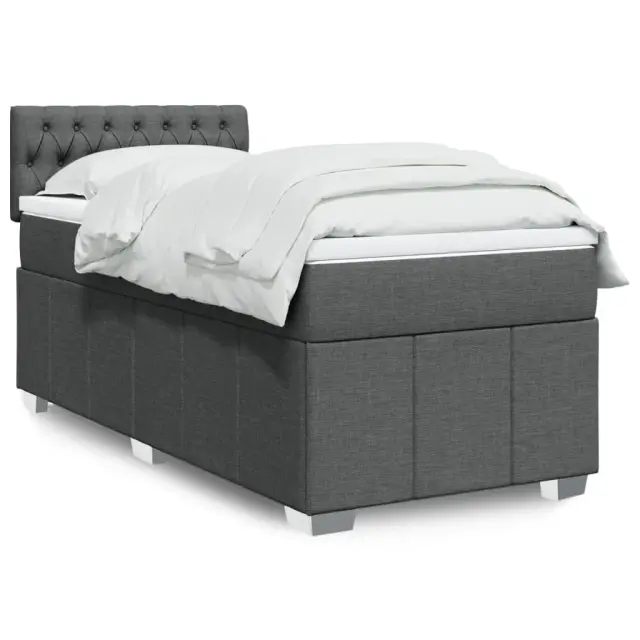 Box spring postelja - Vzmetna postelja z vzmetnico temno siva 80x200 cm blago SL17389
