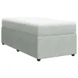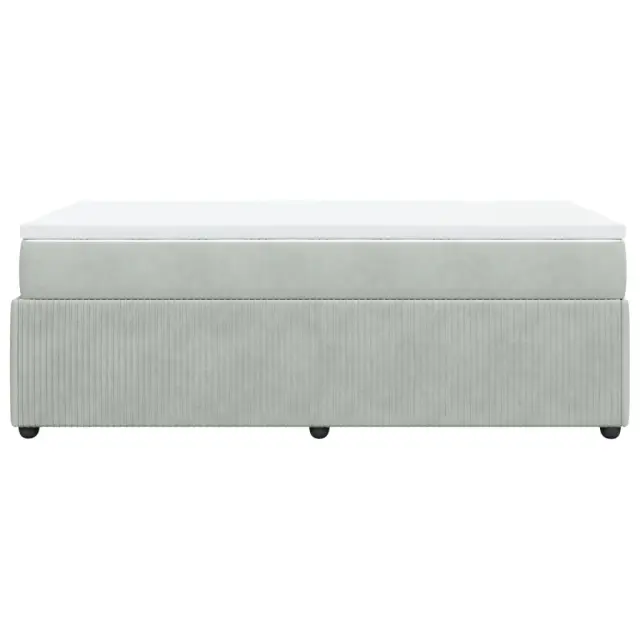 Uporabite to posteljo za uživanje v mirnem spancu! Ponuja maksimalno sprostitev in prijeten spanec. Mehak žamet: Žamet je mehka in razkošna tkanina, ki jo prepoznamo po gostem kupu enakomerno rezanih gladkih vlaken. Žametna tkanina ima značilen mehak občutek, zaradi česar je prijetna na dotik.Ležišče z žepkastimi vzmetmi: Ta vzmetnica z žepkastimi vzmetmi ima posamezne žepkaste vzmeti, ki delujejo neodvisno in zagotavljajo prilagojeno podporo, saj se odzivajo le na pritisk na posameznem območju. Takšna zasnova preprečuje, da bi se ležišče "zvijalo skupaj"; in zmanjšuje prenos gibanja v primerjavi s tradicionalnimi ležišči z odprtimi vzmetmi. Vsaka žepkasta vzmet podpira telo posebej.Udobna vzmetnica: Ta nadvložek za vzmetnico z mehko in zračno površino poveča podporo in udobje ter hkrati podaljša življenjsko dobo vaše vzmetnice. Odstranljiva prevleka omogoča enostavno pranje, zato je vzdrževanje enostavno.Letvice za optimalno podporo: Okvir postelje je opremljen z letvicami, ki zagotavljajo osnovno podporo in zračnost vašega ležišča.Stabilne in vzdržljive noge: Ta postelja je podprta z robustnimi nogami, ki zagotavljajo stabilnost, varnost in trdnost. Dobro je vedeti:Zaradi higienskih razlogov vzmetnice ni mogoče vrniti po odstranitvi ali odprtju embalaže.Posteljni okvir:Barva: Svetlo sivaMaterial: Žamet (100 % poliester), vezan les, konstruiran lesDimenzije: 190 x 90 x 46 cm (D x Š x V)Utrjene plastične nogiceVzmetnica:Barva: Bela in svetlo sivaMaterial prevleke: Žamet (100 % poliester)Material polnila: Žepkaste vzmeti, penaTrdnost: SrednjaDimenzije: 90 x 190 x 20 cm (Š x D x V)Nadvzmetnica:Barva: BelaMaterial: Blago (100 % poliester)Material polnila: PenaDimenzije: 90 x 190 x 5 cm (Š x D x V)Odstranljiva in pralna prevlekaPaket vsebuje:1 x Posteljni okvir1 x Vzmetnica1 x Nadvložek
