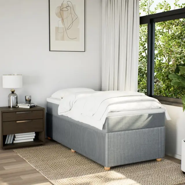 Uporabite to posteljo za uživanje v mirnem spancu! Ponuja maksimalno sprostitev in prijeten spanec. Mehak in trpežen material: Tkanina iz poliestra združuje mehkobo, zračnost in trpežnost ter vam zagotavlja popolno udobje in prijetnost.Ležišče z žepkastimi vzmetmi: Ta vzmetnica z žepkastimi vzmetmi ima posamezne žepkaste vzmeti, ki delujejo neodvisno in zagotavljajo prilagojeno podporo, saj se odzivajo le na pritisk na posameznem območju. Takšna zasnova preprečuje, da bi se ležišče "zvijalo skupaj"; in zmanjšuje prenos gibanja v primerjavi s tradicionalnimi ležišči z odprtimi vzmetmi. Vsaka žepkasta vzmet podpira telo posebej.Udobna vzmetnica: Ta nadvložek za vzmetnico z mehko in zračno površino poveča podporo in udobje ter hkrati podaljša življenjsko dobo vaše vzmetnice. Odstranljiva prevleka omogoča enostavno pranje, zato je vzdrževanje enostavno.Letvice za optimalno podporo: Okvir postelje je opremljen z letvicami, ki zagotavljajo osnovno podporo in zračnost vašega ležišča.Stabilne in vzdržljive noge: Ta postelja je podprta z robustnimi nogami, ki zagotavljajo stabilnost, varnost in trdnost. Dobro je vedeti:Zaradi higienskih razlogov vzmetnice ni mogoče vrniti po odstranitvi ali odprtju embalaže.Posteljni okvir:Barva: Svetlo sivaMaterial: Blago (100 % poliester), vezan les, konstruiran lesDimenzije: 190 x 90 x 46 cm (D x Š x V)Utrjene plastične nogiceVzmetnica:Barva: Bela in svetlo sivaMaterial prevleke: Tkanina (100 % poliester)Material polnila: Žepkaste vzmeti, penaTrdnost: SrednjaDimenzije: 90 x 190 x 20 cm (Š x D x V)Nadvzmetnica:Barva: BelaMaterial: Blago (100 % poliester)Material polnila: PenaDimenzije: 90 x 190 x 5 cm (Š x D x V)Odstranljiva in pralna prevlekaPaket vsebuje:1 x Posteljni okvir1 x Vzmetnica1 x Nadvložek