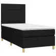Uporabite to box spring posteljo z vzmetnico in LED osvetlitvijo in uživajte v mirnem spancu! To bo osrednja točka vaše spalnice. Trpežno blago: Blago zagotavlja preprost in čist videz, poleg tega pa je zračno in trpežno.Praktično vzglavje: Vzglavje postelje je nastavljivo po višini po vaših željah. To vzglavje za posteljo vam zagotavlja odlično oporo za hrbet, ko sedite na postelji in berete ali gledate filme.Barvit LED trak: Vnesite igrivost v temo z barvitimi LED lučkami!Ležišče z žepkastimi vzmetmi: Vgrajena individualna žepkasta vzmet je znana po zelo visoki kakovosti, hkrati pa zagotavlja visoko stopnjo vzdržljivosti in prilagodljivosti. Lahko učinkovito absorbira hrup in udarce, ki jih povzročata metanje in obračanje.Koži prijazen nadvložek: Zaščita za ležišče ima trpežno in koži prijazno tkanino, zaradi česar je mehka in udobna. Opomba:Zaradi higienskih razlogov vzmetnice ni mogoče vrniti po odstranitvi ali odprtju embalaže.Režete lahko samo del s simbolom škarij in samo del z USB bo deloval kot prej.Vsakemu izdelku je priložen priročnik za enostavno sestavljanje.Izdelek ima priključek USB, vendar certificiran 5V vir napajanja USB ni priložen.Postelja:Barva: ČrnaMaterial: Blago (100 % poliester), vezan les, inženirski les, trden macesnov lesCelotne dimenzije: 203 x 90 x 118/128 cm (D x Š x V)Vzmetnica za posteljo:Barva: Bela in črnaMaterial: Blago (100 % poliester)Material polnila: Žepkaste vzmeti, penaDimenzije: 90 x 200 x 20 cm (Š x D x V)Nadvložek:Barva: BelaMaterial nadvložka: Blago (100 % poliester)Material polnila: PenaDimenzije: 90 x 200 x 5 cm (Š x D x V)LED trak:Dolžina: 55 cmNapetost: DC 5 VDolžina kabla USB : 150 cmDolžina električnega kabla: 30 cmIP ocena: IP65S simbolom za rezanje s škarjamiPaket vsebuje:1 x Posteljni okvir1 x Vzglavje1 x Vzmetnica1 x Nadvložek1 x LED trak Ta izdelek se napaja z DC 5 V, vendar certificirani 5 V vir napajanja USB ni priložen. Višja napetost lahko povzroči pregrevanje in poškoduje napravo ter povzroči potencialno nevarnost pregrevanja in požara.