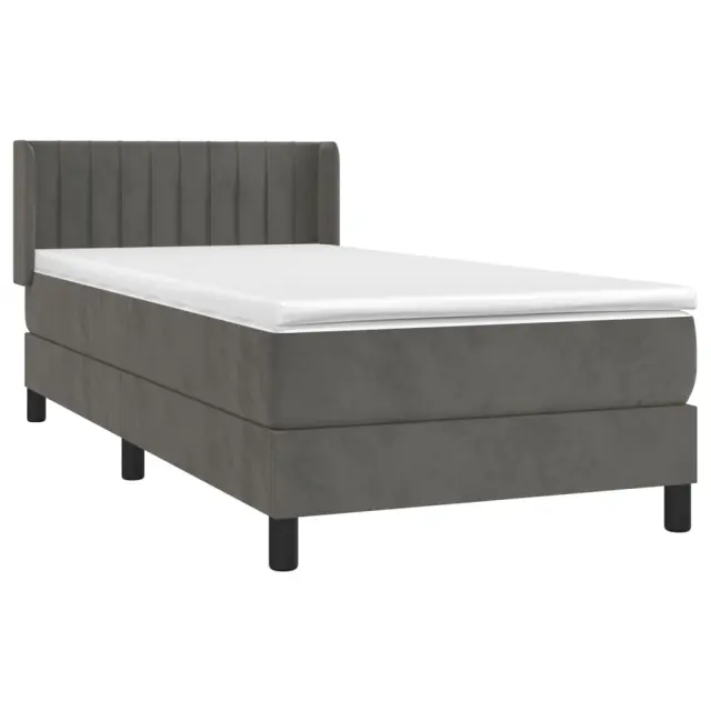 Uporabite to box spring posteljo za uživanje v mirnem spancu! Ponuja maksimalno sprostitev in prijeten spanec. Mehak žamet: Žamet je mehka in razkošna tkanina, ki jo prepoznamo po gostem kupu enakomerno rezanih gladkih vlaken. Žametna tkanina ima značilen mehak občutek, zaradi česar je prijetna na dotik.Praktično vzglavje: Vzglavje postelje je nastavljivo po višini po vaših željah. To vzglavje za posteljo vam zagotavlja odlično oporo za hrbet, ko sedite na postelji in berete ali gledate filme.Ležišče z žepkastimi vzmetmi: Vgrajena individualna žepkasta vzmet je znana po zelo visoki kakovosti, hkrati pa zagotavlja visoko stopnjo vzdržljivosti in prilagodljivosti. Lahko učinkovito absorbira hrup in udarce, ki jih povzročata metanje in obračanje.Srednje trda opora: Posteljna vzmetnica odlično zagotavlja dodatno stabilnost in ravno pravšnjo stopnjo čvrstosti, ne da bi pri tem žrtvovala udobje. Zato je idealna za tiste, ki spijo na hrbtu ali trebuhu.Koži prijazen nadvložek: Zaščita za ležišče ima trpežno in koži prijazno tkanino, zaradi česar je mehka in udobna. Opomba:Zaradi higienskih razlogov vzmetnice ni mogoče vrniti po odstranitvi ali odprtju embalaže.Vsakemu izdelku je priložen priročnik za enostavno sestavljanje.Postelja:Barva: Temno sivaMaterial: Žamet (100 % poliester), trden macesnov les, vezan les, inženirski lesDimenzije: 193 x 93 x 78/88 cm (D x Š x V)Vzmetnica za posteljo:Barva: Bela in temno sivaMaterial: Žamet (100 % poliester)Material polnila: Žepkaste vzmeti, penaDimenzije: 90 x 190 x 20 cm (Š x D x V)Nadvložek:Barva: BelaMaterial nadvložka: Blago (100 % poliester)Material polnila: PenaDimenzije: 90 x 190 x 5 cm (Š x D x V)Paket vsebuje:1 x Posteljni okvir1 x Vzglavje z ušesi1 x Vzmetnica1 x Nadvložek