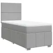 Uporabite to posteljo za uživanje v mirnem spancu! Ponuja maksimalno sprostitev in prijeten spanec. Mehak in trpežen material: Tkanina iz poliestra združuje mehkobo, zračnost in trpežnost ter vam zagotavlja popolno udobje in prijetnost.Ležišče z žepkastimi vzmetmi: Ta vzmetnica z žepkastimi vzmetmi ima posamezne žepkaste vzmeti, ki delujejo neodvisno in zagotavljajo prilagojeno podporo, saj se odzivajo le na pritisk na posameznem območju. Takšna zasnova preprečuje, da bi se ležišče "zvijalo skupaj"; in zmanjšuje prenos gibanja v primerjavi s tradicionalnimi ležišči z odprtimi vzmetmi. Vsaka žepkasta vzmet podpira telo posebej.Nastavljiva višina vzglavja: Višina vzglavja je nastavljiva po vaših željah.Udobna vzmetnica: Ta nadvložek za vzmetnico z mehko in zračno površino poveča podporo in udobje ter hkrati podaljša življenjsko dobo vaše vzmetnice. Odstranljiva prevleka omogoča enostavno pranje, zato je vzdrževanje enostavno.Letvice za optimalno podporo: Okvir postelje je opremljen z letvicami, ki zagotavljajo osnovno podporo in zračnost vašega ležišča. Dobro je vedeti:Zaradi higienskih razlogov vzmetnice ni mogoče vrniti po odstranitvi ali odprtju embalaže.Posteljni okvir z vzglavjem:Barva: Svetlo sivaMaterial: Blago (100 % poliester), vezan les, konstruiran lesDimenzije: 200 x 80 x 140,5/150,5 cm (D x Š x V)Utrjene plastične nogicePotrebno sestavljanje: DaVzmetnica:Barva: Bela in svetlo sivaMaterial: Blago (100 % poliester)Material polnila: Žepkaste vzmeti, penaTrdnost: SrednjaDimenzije: 80 x 200 x 20 cm (Š x D x V)Nadvzmetnica:Barva: BelaMaterial: Blago (100 % poliester)Material polnila: PenaDimenzije: 80 x 200 x 5 cm (Š x D x V)Odstranljiva in pralna prevlekaPaket vsebuje:1 x Posteljni okvir1 x Vzglavje1 x Vzmetnica1 x Nadvložek