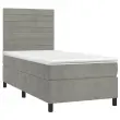 Uporabite to box spring posteljo z vzmetnico in LED osvetlitvijo in uživajte v mirnem spancu! To bo osrednja točka vaše spalnice. Mehak žamet: Žamet je mehka in razkošna tkanina, ki jo prepoznamo po gostem kupu enakomerno rezanih gladkih vlaken. Žametna tkanina ima značilen mehak občutek, zaradi česar je prijetna na dotik.Praktično vzglavje: Vzglavje postelje je nastavljivo po višini po vaših željah. To vzglavje za posteljo vam zagotavlja odlično oporo za hrbet, ko sedite na postelji in berete ali gledate filme.Barvit LED trak: Vnesite igrivost v temo z barvitimi LED lučkami!Ležišče z žepkastimi vzmetmi: Vgrajena individualna žepkasta vzmet je znana po zelo visoki kakovosti, hkrati pa zagotavlja visoko stopnjo vzdržljivosti in prilagodljivosti. Lahko učinkovito absorbira hrup in udarce, ki jih povzročata metanje in obračanje.Koži prijazen nadvložek: Zaščita za ležišče ima trpežno in koži prijazno tkanino, zaradi česar je mehka in udobna. Opomba:Zaradi higienskih razlogov vzmetnice ni mogoče vrniti po odstranitvi ali odprtju embalaže.Režete lahko samo del s simbolom škarij in samo del z USB bo deloval kot prej.Vsakemu izdelku je priložen priročnik za enostavno sestavljanje.Izdelek ima priključek USB, vendar certificiran 5V vir napajanja USB ni priložen.Postelja:Barva: Svetlo sivaMaterial: Žamet (100 % poliester), vezan les, inženirski les, trden macesnov lesCelotne dimenzije: 203 x 80 x 118/128 cm (D x Š x V)Vzmetnica za posteljo:Barva: Bela in svetlo sivaMaterial: Žamet (100 % poliester)Material polnila: Žepkaste vzmeti, penaDimenzije: 80 x 200 x 20 cm (Š x D x V)Nadvložek:Barva: BelaMaterial nadvložka: Blago (100 % poliester)Material polnila: PenaDimenzije: 80 x 200 x 5 cm (Š x D x V)LED trak:Dolžina: 55 cmNapetost: DC 5 VDolžina kabla USB : 150 cmDolžina električnega kabla: 30 cmIP ocena: IP65S simbolom za rezanje s škarjamiPaket vsebuje:1 x Posteljni okvir1 x Vzglavje1 x Vzmetnica1 x Nadvložek1 x LED trak Ta izdelek se napaja z DC 5 V, vendar certificirani 5 V vir napajanja USB ni priložen. Višja napetost lahko povzroči pregrevanje in poškoduje napravo ter povzroči potencialno nevarnost pregrevanja in požara.