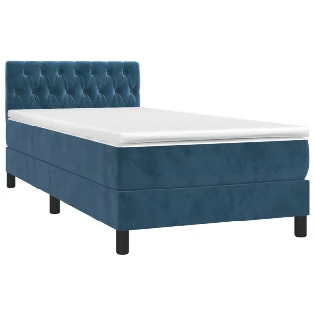Uporabite to box spring posteljo za uživanje v mirnem spancu! Ponuja maksimalno sprostitev in prijeten spanec. Mehak žamet: Žamet je mehka in razkošna tkanina, ki jo prepoznamo po gostem kupu enakomerno rezanih gladkih vlaken. Žametna tkanina ima značilen mehak občutek, zaradi česar je prijetna na dotik.Praktično vzglavje: Vzglavje postelje je nastavljivo po višini po vaših željah. To vzglavje za posteljo vam zagotavlja odlično oporo za hrbet, ko sedite na postelji in berete ali gledate filme.Ležišče z žepkastimi vzmetmi: Vgrajena individualna žepkasta vzmet je znana po zelo visoki kakovosti, hkrati pa zagotavlja visoko stopnjo vzdržljivosti in prilagodljivosti. Lahko učinkovito absorbira hrup in udarce, ki jih povzročata metanje in obračanje.Srednje trda opora: Posteljna vzmetnica odlično zagotavlja dodatno stabilnost in ravno pravšnjo stopnjo čvrstosti, ne da bi pri tem žrtvovala udobje. Zato je idealna za tiste, ki spijo na hrbtu ali trebuhu.Koži prijazen nadvložek: Zaščita za ležišče ima trpežno in koži prijazno tkanino, zaradi česar je mehka in udobna. Opomba:Zaradi higienskih razlogov vzmetnice ni mogoče vrniti po odstranitvi ali odprtju embalaže.Vsakemu izdelku je priložen priročnik za enostavno sestavljanje.Postelja:Barva: Temno modraMaterial: Žamet (100 % poliester), vezan les, konstruiran lesDimenzije: 193 x 90 x 78/88 cm (D x Š x V)Vzmetnica za posteljo:Barva: Bela in temno modraMaterial: Žamet (100 % poliester)Material polnila: Žepkaste vzmeti, penaDimenzije: 90 x 190 x 20 cm (Š x D x V)Nadvložek:Barva: BelaMaterial nadvložka: Blago (100 % poliester)Material polnila: PenaDimenzije: 90 x 190 x 5 cm (Š x D x V)Paket vsebuje:1 x Posteljni okvir1 x Vzglavje1 x Vzmetnica1 x Nadvložek