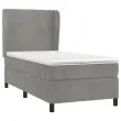 Uporabite to box spring posteljo za uživanje v mirnem spancu! Ponuja maksimalno sprostitev in prijeten spanec. Mehak žamet: Žamet je mehka in razkošna tkanina, ki jo prepoznamo po gostem kupu enakomerno rezanih gladkih vlaken. Žametna tkanina ima značilen mehak občutek, zaradi česar je prijetna na dotik.Praktično vzglavje: Vzglavje postelje je nastavljivo po višini po vaših željah. To vzglavje za posteljo vam zagotavlja odlično oporo za hrbet, ko sedite na postelji in berete ali gledate filme.Ležišče z žepkastimi vzmetmi: Vgrajena individualna žepkasta vzmet je znana po zelo visoki kakovosti, hkrati pa zagotavlja visoko stopnjo vzdržljivosti in prilagodljivosti. Lahko učinkovito absorbira hrup in udarce, ki jih povzročata metanje in obračanje.Srednje trda opora: Posteljna vzmetnica odlično zagotavlja dodatno stabilnost in ravno pravšnjo stopnjo čvrstosti, ne da bi pri tem žrtvovala udobje. Zato je idealna za tiste, ki spijo na hrbtu ali trebuhu.Koži prijazen nadvložek: Zaščita za ležišče ima trpežno in koži prijazno tkanino, zaradi česar je mehka in udobna. Opomba:Zaradi higienskih razlogov vzmetnice ni mogoče vrniti po odstranitvi ali odprtju embalaže.Vsakemu izdelku je priložen priročnik za enostavno sestavljanje.Postelja:Barva: Svetlo sivaMaterial: Žamet (100 % poliester), trden macesnov les, vezan les, inženirski lesDimenzije: 203 x 83 x 118/128 cm (D x Š x V)Vzmetnica za posteljo:Barva: Bela in svetlo sivaMaterial: Žamet (100 % poliester)Material polnila: Žepkaste vzmeti, penaDimenzije: 80 x 200 x 20 cm (Š x D x V)Nadvložek:Barva: BelaMaterial nadvložka: Blago (100 % poliester)Material polnila: PenaDimenzije: 80 x 200 x 5 cm (Š x D x V)Paket vsebuje:1 x Posteljni okvir1 x Vzglavje z ušesi1 x Vzmetnica1 x Nadvložek
