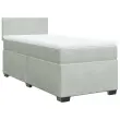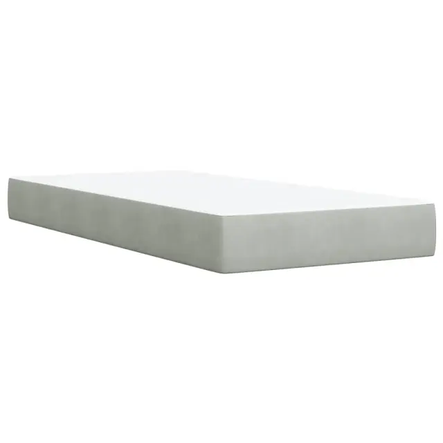 Uporabite to posteljo za uživanje v mirnem spancu! Ponuja maksimalno sprostitev in prijeten spanec. Mehak žamet: Žamet je mehka in razkošna tkanina, ki jo prepoznamo po gostem kupu enakomerno rezanih gladkih vlaken. Žametna tkanina ima značilen mehak občutek, zaradi česar je prijetna na dotik.Ležišče z žepkastimi vzmetmi: Ta vzmetnica z žepkastimi vzmetmi ima posamezne žepkaste vzmeti, ki delujejo neodvisno in zagotavljajo prilagojeno podporo, saj se odzivajo le na pritisk na posameznem območju. Takšna zasnova preprečuje, da bi se ležišče "zvijalo skupaj"; in zmanjšuje prenos gibanja v primerjavi s tradicionalnimi ležišči z odprtimi vzmetmi. Vsaka žepkasta vzmet podpira telo posebej.Udobna vzmetnica: Ta nadvložek za vzmetnico z mehko in zračno površino poveča podporo in udobje ter hkrati podaljša življenjsko dobo vaše vzmetnice. Odstranljiva prevleka omogoča enostavno pranje, zato je vzdrževanje enostavno.Udobna opora: To vzglavje za posteljo vam zagotavlja odlično oporo za hrbet, ko sedite na postelji in berete ali gledate filme.Stabilne in vzdržljive noge: Ta postelja je podprta z robustnimi nogami, ki zagotavljajo stabilnost, varnost in trdnost. Dobro je vedeti:Zaradi higienskih razlogov vzmetnice ni mogoče vrniti po odstranitvi ali odprtju embalaže.Posteljni okvir z vzglavjem:Barva: Svetlo sivaMaterial: Žamet (100 % poliester), vezan les, konstruiran lesDimenzije: 200 x 80 x 100,5 cm (D x Š x V)Utrjene plastične nogiceVzmetnica:Barva: Bela in svetlo sivaMaterial prevleke: Žamet (100 % poliester)Material polnila: Žepkaste vzmeti, penaTrdnost: SrednjaDimenzije: 80 x 200 x 20 cm (Š x D x V)Nadvzmetnica:Barva: BelaMaterial: Blago (100 % poliester)Material polnila: PenaDimenzije: 80 x 200 x 5 cm (Š x D x V)Odstranljiva in pralna prevleka Paket vsebuje:1 x Posteljni okvir1 x Vzglavje1 x Vzmetnica1 x Nadvložek