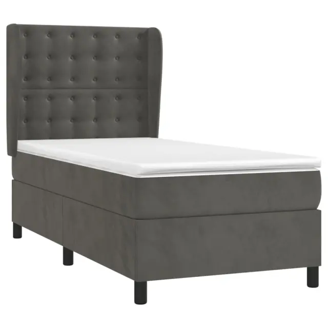 Uporabite to box spring posteljo za uživanje v mirnem spancu! Ponuja maksimalno sprostitev in prijeten spanec. Mehak žamet: Žamet je mehka in razkošna tkanina, ki jo prepoznamo po gostem kupu enakomerno rezanih gladkih vlaken. Žametna tkanina ima značilen mehak občutek, zaradi česar je prijetna na dotik.Praktično vzglavje: Vzglavje postelje je nastavljivo po višini po vaših željah. To vzglavje za posteljo vam zagotavlja odlično oporo za hrbet, ko sedite na postelji in berete ali gledate filme.Ležišče z žepkastimi vzmetmi: Vgrajena individualna žepkasta vzmet je znana po zelo visoki kakovosti, hkrati pa zagotavlja visoko stopnjo vzdržljivosti in prilagodljivosti. Lahko učinkovito absorbira hrup in udarce, ki jih povzročata metanje in obračanje.Srednje trda opora: Posteljna vzmetnica odlično zagotavlja dodatno stabilnost in ravno pravšnjo stopnjo čvrstosti, ne da bi pri tem žrtvovala udobje. Zato je idealna za tiste, ki spijo na hrbtu ali trebuhu.Koži prijazen nadvložek: Zaščita za ležišče ima trpežno in koži prijazno tkanino, zaradi česar je mehka in udobna. Opomba:Zaradi higienskih razlogov vzmetnice ni mogoče vrniti po odstranitvi ali odprtju embalaže.Vsakemu izdelku je priložen priročnik za enostavno sestavljanje.Postelja:Barva: Temno sivaMaterial: Žamet (100 % poliester), trden macesnov les, vezan les, inženirski lesDimenzije: 203 x 83 x 118/128 cm (D x Š x V)Vzmetnica za posteljo:Barva: Bela in temno sivaMaterial: Žamet (100 % poliester)Material polnila: Žepkaste vzmeti, penaDimenzije: 80 x 200 x 20 cm (Š x D x V)Nadvložek:Barva: BelaMaterial nadvložka: Blago (100 % poliester)Material polnila: PenaDimenzije: 80 x 200 x 5 cm (Š x D x V)Paket vsebuje:1 x Posteljni okvir1 x Vzglavje z ušesi1 x Vzmetnica1 x Nadvložek