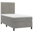 Uporabite to box spring posteljo za uživanje v mirnem spancu! Ponuja maksimalno sprostitev in prijeten spanec. Mehak žamet: Žamet je mehka in razkošna tkanina, ki jo prepoznamo po gostem kupu enakomerno rezanih gladkih vlaken. Žametna tkanina ima značilen mehak občutek, zaradi česar je prijetna na dotik.Praktično vzglavje: Vzglavje postelje je nastavljivo po višini po vaših željah. To vzglavje za posteljo vam zagotavlja odlično oporo za hrbet, ko sedite na postelji in berete ali gledate filme.Ležišče z žepkastimi vzmetmi: Vgrajena individualna žepkasta vzmet je znana po zelo visoki kakovosti, hkrati pa zagotavlja visoko stopnjo vzdržljivosti in prilagodljivosti. Lahko učinkovito absorbira hrup in udarce, ki jih povzročata metanje in obračanje.Srednje trda opora: Posteljna vzmetnica odlično zagotavlja dodatno stabilnost in ravno pravšnjo stopnjo čvrstosti, ne da bi pri tem žrtvovala udobje. Zato je idealna za tiste, ki spijo na hrbtu ali trebuhu.Koži prijazen nadvložek: Zaščita za ležišče ima trpežno in koži prijazno tkanino, zaradi česar je mehka in udobna. Opomba:Zaradi higienskih razlogov vzmetnice ni mogoče vrniti po odstranitvi ali odprtju embalaže.Vsakemu izdelku je priložen priročnik za enostavno sestavljanje.Postelja:Barva: Svetlo sivaMaterial: Žamet (100 % poliester), vezan les, konstruiran lesDimenzije: 203 x 90 x 118/128 cm (D x Š x V)Vzmetnica za posteljo:Barva: Bela in svetlo sivaMaterial: Žamet (100 % poliester)Material polnila: Žepkaste vzmeti, penaDimenzije: 90 x 200 x 20 cm (Š x D x V)Nadvložek:Barva: BelaMaterial nadvložka: Blago (100 % poliester)Material polnila: PenaDimenzije: 90 x 200 x 5 cm (Š x D x V)Paket vsebuje:1 x Posteljni okvir1 x Vzglavje1 x Vzmetnica1 x Nadvložek