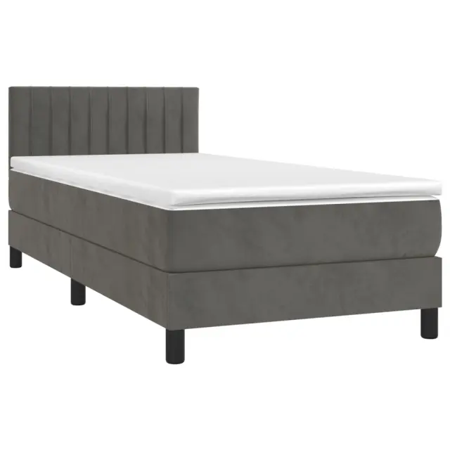Box spring postelja - Vzmetna postelja z vzmetnico LED temno siva 90x200 cm žamet SL9382