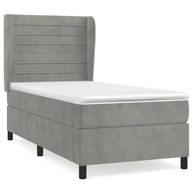 Uporabite to box spring posteljo za uživanje v mirnem spancu! Ponuja maksimalno sprostitev in prijeten spanec. Mehak žamet: Žamet je mehka in razkošna tkanina, ki jo prepoznamo po gostem kupu enakomerno rezanih gladkih vlaken. Žametna tkanina ima značilen mehak občutek, zaradi česar je prijetna na dotik.Praktično vzglavje: Vzglavje postelje je nastavljivo po višini po vaših željah. To vzglavje za posteljo vam zagotavlja odlično oporo za hrbet, ko sedite na postelji in berete ali gledate filme.Ležišče z žepkastimi vzmetmi: Vgrajena individualna žepkasta vzmet je znana po zelo visoki kakovosti, hkrati pa zagotavlja visoko stopnjo vzdržljivosti in prilagodljivosti. Lahko učinkovito absorbira hrup in udarce, ki jih povzročata metanje in obračanje.Srednje trda opora: Posteljna vzmetnica odlično zagotavlja dodatno stabilnost in ravno pravšnjo stopnjo čvrstosti, ne da bi pri tem žrtvovala udobje. Zato je idealna za tiste, ki spijo na hrbtu ali trebuhu.Koži prijazen nadvložek: Zaščita za ležišče ima trpežno in koži prijazno tkanino, zaradi česar je mehka in udobna. Opomba:Zaradi higienskih razlogov vzmetnice ni mogoče vrniti po odstranitvi ali odprtju embalaže.Vsakemu izdelku je priložen priročnik za enostavno sestavljanje.Postelja:Barva: Svetlo sivaMaterial: Žamet (100 % poliester), trden macesnov les, vezan les, inženirski lesDimenzije: 203 x 83 x 118/128 cm (D x Š x V)Vzmetnica za posteljo:Barva: Bela in svetlo sivaMaterial: Žamet (100 % poliester)Material polnila: Žepkaste vzmeti, penaDimenzije: 80 x 200 x 20 cm (Š x D x V)Nadvložek:Barva: BelaMaterial nadvložka: Blago (100 % poliester)Material polnila: PenaDimenzije: 80 x 200 x 5 cm (Š x D x V)Paket vsebuje:1 x Posteljni okvir1 x Vzglavje z ušesi1 x Vzmetnica1 x Nadvložek