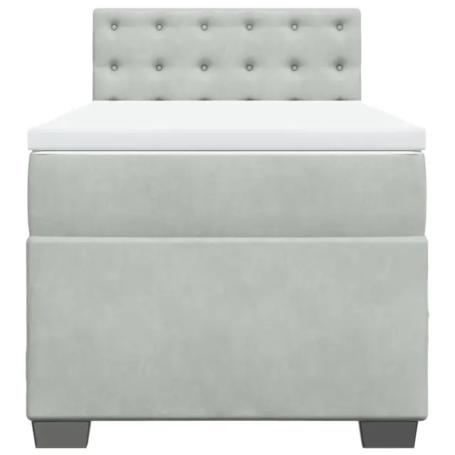 Uporabite to posteljo za uživanje v mirnem spancu! Ponuja maksimalno sprostitev in prijeten spanec. Mehak žamet: Žamet je mehka in razkošna tkanina, ki jo prepoznamo po gostem kupu enakomerno rezanih gladkih vlaken. Žametna tkanina ima značilen mehak občutek, zaradi česar je prijetna na dotik.Ležišče z žepkastimi vzmetmi: Ta vzmetnica z žepkastimi vzmetmi ima posamezne žepkaste vzmeti, ki delujejo neodvisno in zagotavljajo prilagojeno podporo, saj se odzivajo le na pritisk na posameznem območju. Takšna zasnova preprečuje, da bi se ležišče "zvijalo skupaj"; in zmanjšuje prenos gibanja v primerjavi s tradicionalnimi ležišči z odprtimi vzmetmi. Vsaka žepkasta vzmet podpira telo posebej.Udobna vzmetnica: Ta nadvložek za vzmetnico z mehko in zračno površino poveča podporo in udobje ter hkrati podaljša življenjsko dobo vaše vzmetnice. Odstranljiva prevleka omogoča enostavno pranje, zato je vzdrževanje enostavno.Udobna opora: To vzglavje za posteljo vam zagotavlja odlično oporo za hrbet, ko sedite na postelji in berete ali gledate filme.Stabilne in vzdržljive noge: Ta postelja je podprta z robustnimi nogami, ki zagotavljajo stabilnost, varnost in trdnost. Dobro je vedeti:Zaradi higienskih razlogov vzmetnice ni mogoče vrniti po odstranitvi ali odprtju embalaže.Posteljni okvir z vzglavjem:Barva: Svetlo sivaMaterial: Žamet (100 % poliester), vezan les, konstruiran lesDimenzije: 200 x 80 x 100,5 cm (D x Š x V)Utrjene plastične nogiceVzmetnica:Barva: Bela in svetlo sivaMaterial prevleke: Žamet (100 % poliester)Material polnila: Žepkaste vzmeti, penaTrdnost: SrednjaDimenzije: 80 x 200 x 20 cm (Š x D x V)Nadvzmetnica:Barva: BelaMaterial: Blago (100 % poliester)Material polnila: PenaDimenzije: 80 x 200 x 5 cm (Š x D x V)Odstranljiva in pralna prevleka Paket vsebuje:1 x Posteljni okvir1 x Vzglavje1 x Vzmetnica1 x Nadvložek