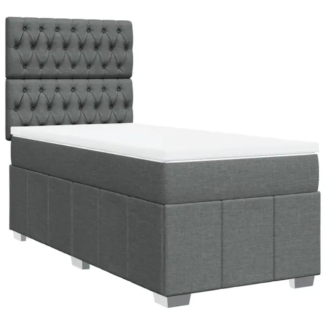 Box spring postelja - Vzmetna postelja z vzmetnico temno siva 90x200 cm blago SL10386