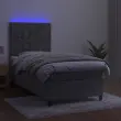 Uporabite to box spring posteljo z vzmetnico in LED osvetlitvijo in uživajte v mirnem spancu! To bo osrednja točka vaše spalnice. Mehak žamet: Žamet je mehka in razkošna tkanina, ki jo prepoznamo po gostem kupu enakomerno rezanih gladkih vlaken. Žametna tkanina ima značilen mehak občutek, zaradi česar je prijetna na dotik.Praktično vzglavje: Vzglavje postelje je nastavljivo po višini po vaših željah. To vzglavje za posteljo vam zagotavlja odlično oporo za hrbet, ko sedite na postelji in berete ali gledate filme.Barvit LED trak: Vnesite igrivost v temo z barvitimi LED lučkami!Ležišče z žepkastimi vzmetmi: Vgrajena individualna žepkasta vzmet je znana po zelo visoki kakovosti, hkrati pa zagotavlja visoko stopnjo vzdržljivosti in prilagodljivosti. Lahko učinkovito absorbira hrup in udarce, ki jih povzročata metanje in obračanje.Koži prijazen nadvložek: Zaščita za ležišče ima trpežno in koži prijazno tkanino, zaradi česar je mehka in udobna. Opomba:Zaradi higienskih razlogov vzmetnice ni mogoče vrniti po odstranitvi ali odprtju embalaže.Režete lahko samo del s simbolom škarij in samo del z USB bo deloval kot prej.Vsakemu izdelku je priložen priročnik za enostavno sestavljanje.Izdelek ima priključek USB, vendar certificiran 5V vir napajanja USB ni priložen.Postelja:Barva: Svetlo sivaMaterial: Žamet (100 % poliester), vezan les, inženirski les, trden macesnov lesCelotne dimenzije: 203 x 80 x 118/128 cm (D x Š x V)Vzmetnica za posteljo:Barva: Bela in svetlo sivaMaterial: Žamet (100 % poliester)Material polnila: Žepkaste vzmeti, penaDimenzije: 80 x 200 x 20 cm (Š x D x V)Nadvložek:Barva: BelaMaterial nadvložka: Blago (100 % poliester)Material polnila: PenaDimenzije: 80 x 200 x 5 cm (Š x D x V)LED trak:Dolžina: 55 cmNapetost: DC 5 VDolžina kabla USB : 150 cmDolžina električnega kabla: 30 cmIP ocena: IP65S simbolom za rezanje s škarjamiPaket vsebuje:1 x Posteljni okvir1 x Vzglavje1 x Vzmetnica1 x Nadvložek1 x LED trak Ta izdelek se napaja z DC 5 V, vendar certificirani 5 V vir napajanja USB ni priložen. Višja napetost lahko povzroči pregrevanje in poškoduje napravo ter povzroči potencialno nevarnost pregrevanja in požara.