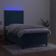 Uporabite to box spring posteljo z vzmetnico in LED osvetlitvijo in uživajte v mirnem spancu! To bo osrednja točka vaše spalnice. Mehak žamet: Žamet je mehka in razkošna tkanina, ki jo prepoznamo po gostem kupu enakomerno rezanih gladkih vlaken. Žametna tkanina ima značilen mehak občutek, zaradi česar je prijetna na dotik.Praktično vzglavje: Vzglavje postelje je nastavljivo po višini po vaših željah. To vzglavje za posteljo vam zagotavlja odlično oporo za hrbet, ko sedite na postelji in berete ali gledate filme.Barvit LED trak: Vnesite igrivost v temo z barvitimi LED lučkami!Ležišče z žepkastimi vzmetmi: Vgrajena individualna žepkasta vzmet je znana po zelo visoki kakovosti, hkrati pa zagotavlja visoko stopnjo vzdržljivosti in prilagodljivosti. Lahko učinkovito absorbira hrup in udarce, ki jih povzročata metanje in obračanje.Koži prijazen nadvložek: Zaščita za ležišče ima trpežno in koži prijazno tkanino, zaradi česar je mehka in udobna. Opomba:Zaradi higienskih razlogov vzmetnice ni mogoče vrniti po odstranitvi ali odprtju embalaže.Režete lahko samo del s simbolom škarij in samo del z USB bo deloval kot prej.Vsakemu izdelku je priložen priročnik za enostavno sestavljanje.Izdelek ima priključek USB, vendar certificiran 5V vir napajanja USB ni priložen.Postelja:Barva: Temno modraMaterial: Žamet (100 % poliester), vezan les, inženirski les, trden macesnov lesCelotne dimenzije: 203 x 80 x 118/128 cm (D x Š x V)Vzmetnica za posteljo:Barva: Bela in temno modraMaterial: Žamet (100 % poliester)Material polnila: Žepkaste vzmeti, penaDimenzije: 80 x 200 x 20 cm (Š x D x V)Nadvložek:Barva: BelaMaterial nadvložka: Blago (100 % poliester)Material polnila: PenaDimenzije: 80 x 200 x 5 cm (Š x D x V)LED trak:Dolžina: 55 cmNapetost: DC 5 VDolžina kabla USB : 150 cmDolžina električnega kabla: 30 cmIP ocena: IP65S simbolom za rezanje s škarjamiPaket vsebuje:1 x Posteljni okvir1 x Vzglavje1 x Vzmetnica1 x Nadvložek1 x LED trak Ta izdelek se napaja z DC 5 V, vendar certificirani 5 V vir napajanja USB ni priložen. Višja napetost lahko povzroči pregrevanje in poškoduje napravo ter povzroči potencialno nevarnost pregrevanja in požara.