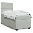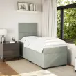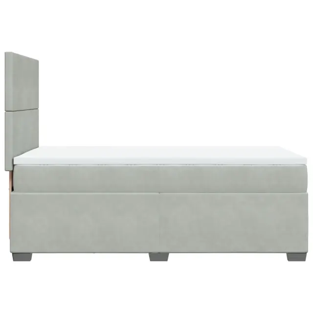 Uporabite to posteljo za uživanje v mirnem spancu! Ponuja maksimalno sprostitev in prijeten spanec. Mehak in udoben material: Vlažna tkanina iz žameta ima mehko in gladko površino, ki zagotavlja prijeten občutek ter vam zagotavlja toploto in popolno udobje.Ležišče z žepkastimi vzmetmi: Ta vzmetnica z žepkastimi vzmetmi ima posamezne žepkaste vzmeti, ki delujejo neodvisno in zagotavljajo prilagojeno podporo, saj se odzivajo le na pritisk na posameznem območju. Takšna zasnova preprečuje, da bi se ležišče "zvijalo skupaj"; in zmanjšuje prenos gibanja v primerjavi s tradicionalnimi ležišči z odprtimi vzmetmi. Vsaka žepkasta vzmet podpira telo posebej.Nastavljiva višina vzglavja: Višina vzglavja je nastavljiva po vaših željah.Udobna vzmetnica: Ta nadvložek za vzmetnico z mehko in zračno površino poveča podporo in udobje ter hkrati podaljša življenjsko dobo vaše vzmetnice. Odstranljiva prevleka omogoča enostavno pranje, zato je vzdrževanje enostavno.Letvice za optimalno podporo: Okvir postelje je opremljen z letvicami, ki zagotavljajo osnovno podporo in zračnost vašega ležišča. Dobro je vedeti:Zaradi higienskih razlogov vzmetnice ni mogoče vrniti po odstranitvi ali odprtju embalaže.Posteljni okvir z vzglavjem:Barva: Svetlo sivaMaterial: Žamet (100 % poliester), vezan les, konstruiran lesDimenzije: 200 x 80 x 140,5/150,5 cm (D x Š x V)Utrjene plastične nogicePotrebno sestavljanje: DaVzmetnica:Barva: Bela in svetlo sivaMaterial: Žamet (100 % poliester)Material polnila: Žepkaste vzmeti, penaTrdnost: SrednjaDimenzije: 80 x 200 x 20 cm (Š x D x V)Nadvzmetnica:Barva: BelaMaterial: Blago (100 % poliester)Material polnila: PenaDimenzije: 80 x 200 x 5 cm (Š x D x V)Odstranljiva in pralna prevlekaPaket vsebuje:1 x Posteljni okvir1 x Vzglavje1 x Vzmetnica1 x Nadvložek