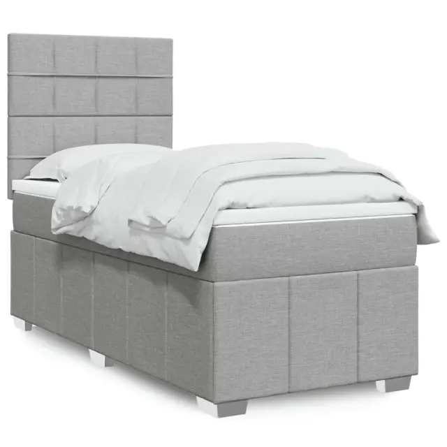 Box spring postelja - Vzmetna postelja z vzmetnico svetlo siva 90x200 cm blago SL4038