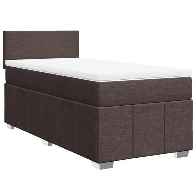 Box spring postelja - Vzmetna postelja z vzmetnico temno rjav 90x190 cm blago SL4759