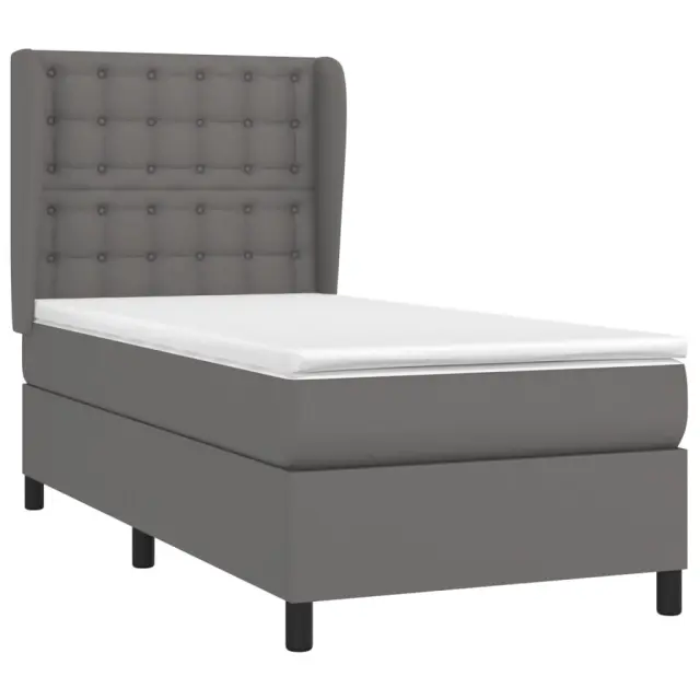 Box spring postelja - Vzmetna postelja z vzmetnico siva 80x200 cm umetno usnje SL7703