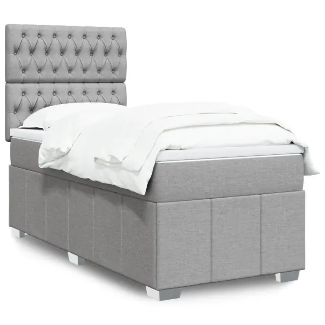 Box spring postelja - Vzmetna postelja z vzmetnico svetlo siv 100x200 cm blago SL11103