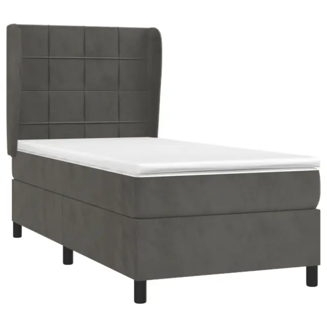 Box spring postelja - Vzmetna postelja z vzmetnico temno siva 80x200 cm žamet SL7825