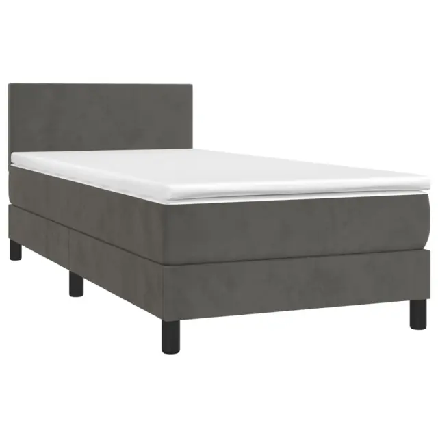 Box spring postelja - Vzmetna postelja z vzmetnico LED temno siva 90x190 cm žamet SL15476