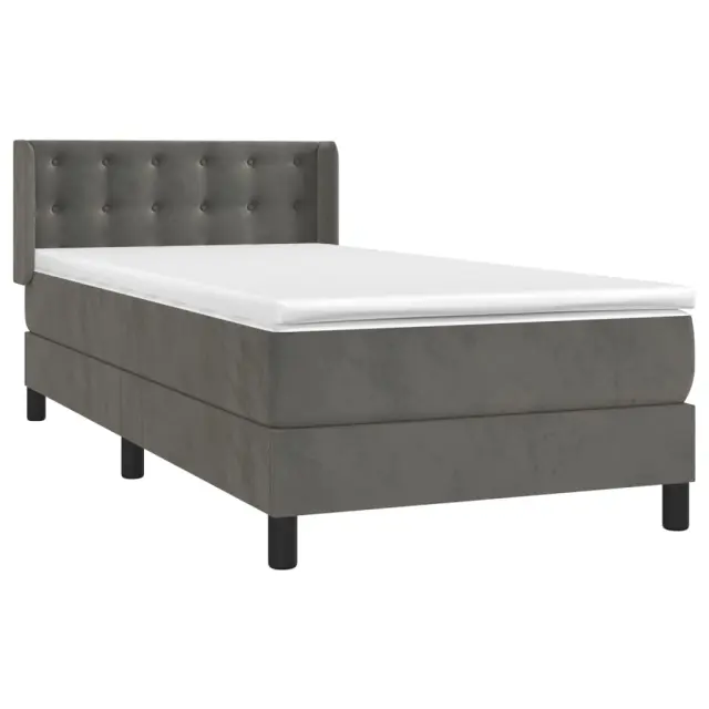 Uporabite to box spring posteljo za uživanje v mirnem spancu! Ponuja maksimalno sprostitev in prijeten spanec. Mehak žamet: Žamet je mehka in razkošna tkanina, ki jo prepoznamo po gostem kupu enakomerno rezanih gladkih vlaken. Žametna tkanina ima značilen mehak občutek, zaradi česar je prijetna na dotik.Praktično vzglavje: Vzglavje postelje je nastavljivo po višini po vaših željah. To vzglavje za posteljo vam zagotavlja odlično oporo za hrbet, ko sedite na postelji in berete ali gledate filme.Ležišče z žepkastimi vzmetmi: Vgrajena individualna žepkasta vzmet je znana po zelo visoki kakovosti, hkrati pa zagotavlja visoko stopnjo vzdržljivosti in prilagodljivosti. Lahko učinkovito absorbira hrup in udarce, ki jih povzročata metanje in obračanje.Srednje trda opora: Posteljna vzmetnica odlično zagotavlja dodatno stabilnost in ravno pravšnjo stopnjo čvrstosti, ne da bi pri tem žrtvovala udobje. Zato je idealna za tiste, ki spijo na hrbtu ali trebuhu.Koži prijazen nadvložek: Zaščita za ležišče ima trpežno in koži prijazno tkanino, zaradi česar je mehka in udobna. Opomba:Zaradi higienskih razlogov vzmetnice ni mogoče vrniti po odstranitvi ali odprtju embalaže.Vsakemu izdelku je priložen priročnik za enostavno sestavljanje.Postelja:Barva: Temno sivaMaterial: Žamet (100 % poliester), trden macesnov les, vezan les, inženirski lesDimenzije: 193 x 93 x 78/88 cm (D x Š x V)Vzmetnica za posteljo:Barva: Bela in temno sivaMaterial: Žamet (100 % poliester)Material polnila: Žepkaste vzmeti, penaDimenzije: 90 x 190 x 20 cm (Š x D x V)Nadvložek:Barva: BelaMaterial nadvložka: Blago (100 % poliester)Material polnila: PenaDimenzije: 90 x 190 x 5 cm (Š x D x V)Paket vsebuje:1 x Posteljni okvir1 x Vzglavje z ušesi1 x Vzmetnica1 x Nadvložek