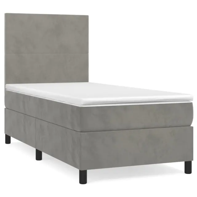 Box spring postelja - Vzmetna postelja z vzmetnico svetlo siva 80x200 cm žamet SL13255