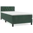 Uporabite to box spring posteljo za uživanje v mirnem spancu! Ponuja maksimalno sprostitev in prijeten spanec. Mehak žamet: Žamet je mehka in razkošna tkanina, ki jo prepoznamo po gostem kupu enakomerno rezanih gladkih vlaken. Žametna tkanina ima značilen mehak občutek, zaradi česar je prijetna na dotik.Praktično vzglavje: Vzglavje postelje je nastavljivo po višini po vaših željah. To vzglavje za posteljo vam zagotavlja odlično oporo za hrbet, ko sedite na postelji in berete ali gledate filme.Ležišče z žepkastimi vzmetmi: Vgrajena individualna žepkasta vzmet je znana po zelo visoki kakovosti, hkrati pa zagotavlja visoko stopnjo vzdržljivosti in prilagodljivosti. Lahko učinkovito absorbira hrup in udarce, ki jih povzročata metanje in obračanje.Srednje trda opora: Posteljna vzmetnica odlično zagotavlja dodatno stabilnost in ravno pravšnjo stopnjo čvrstosti, ne da bi pri tem žrtvovala udobje. Zato je idealna za tiste, ki spijo na hrbtu ali trebuhu.Koži prijazen nadvložek: Zaščita za ležišče ima trpežno in koži prijazno tkanino, zaradi česar je mehka in udobna. Opomba:Zaradi higienskih razlogov vzmetnice ni mogoče vrniti po odstranitvi ali odprtju embalaže.Vsakemu izdelku je priložen priročnik za enostavno sestavljanje.Postelja:Barva: Temno zelenaMaterial: Žamet (100 % poliester), vezan les, konstruiran lesDimenzije: 203 x 80 x 78/88 cm (D x Š x V)Vzmetnica za posteljo:Barva: Bela in temno zelenaMaterial: Žamet (100 % poliester)Material polnila: Žepkaste vzmeti, penaDimenzije: 80 x 200 x 20 cm (Š x D x V)Nadvložek:Barva: BelaMaterial nadvložka: Blago (100 % poliester)Material polnila: PenaDimenzije: 80 x 200 x 5 cm (Š x D x V)Paket vsebuje:1 x Posteljni okvir1 x Vzglavje1 x Vzmetnica1 x Nadvložek