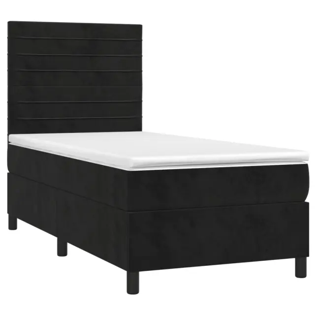 Uporabite to box spring posteljo z vzmetnico in LED osvetlitvijo in uživajte v mirnem spancu! To bo osrednja točka vaše spalnice. Mehak žamet: Žamet je mehka in razkošna tkanina, ki jo prepoznamo po gostem kupu enakomerno rezanih gladkih vlaken. Žametna tkanina ima značilen mehak občutek, zaradi česar je prijetna na dotik.Praktično vzglavje: Vzglavje postelje je nastavljivo po višini po vaših željah. To vzglavje za posteljo vam zagotavlja odlično oporo za hrbet, ko sedite na postelji in berete ali gledate filme.Barvit LED trak: Vnesite igrivost v temo z barvitimi LED lučkami!Ležišče z žepkastimi vzmetmi: Vgrajena individualna žepkasta vzmet je znana po zelo visoki kakovosti, hkrati pa zagotavlja visoko stopnjo vzdržljivosti in prilagodljivosti. Lahko učinkovito absorbira hrup in udarce, ki jih povzročata metanje in obračanje.Koži prijazen nadvložek: Zaščita za ležišče ima trpežno in koži prijazno tkanino, zaradi česar je mehka in udobna. Opomba:Zaradi higienskih razlogov vzmetnice ni mogoče vrniti po odstranitvi ali odprtju embalaže.Režete lahko samo del s simbolom škarij in samo del z USB bo deloval kot prej.Vsakemu izdelku je priložen priročnik za enostavno sestavljanje.Izdelek ima priključek USB, vendar certificiran 5V vir napajanja USB ni priložen.Postelja:Barva: ČrnaMaterial: Žamet (100 % poliester), vezan les, inženirski les, trden macesnov lesCelotne dimenzije: 203 x 80 x 118/128 cm (D x Š x V)Vzmetnica za posteljo:Barva: Bela in črnaMaterial: Žamet (100 % poliester)Material polnila: Žepkaste vzmeti, penaDimenzije: 80 x 200 x 20 cm (Š x D x V)Nadvložek:Barva: BelaMaterial nadvložka: Blago (100 % poliester)Material polnila: PenaDimenzije: 80 x 200 x 5 cm (Š x D x V)LED trak:Dolžina: 55 cmNapetost: DC 5 VDolžina kabla USB : 150 cmDolžina električnega kabla: 30 cmIP ocena: IP65S simbolom za rezanje s škarjamiPaket vsebuje:1 x Posteljni okvir1 x Vzglavje1 x Vzmetnica1 x Nadvložek1 x LED trak Ta izdelek se napaja z DC 5 V, vendar certificirani 5 V vir napajanja USB ni priložen. Višja napetost lahko povzroči pregrevanje in poškoduje napravo ter povzroči potencialno nevarnost pregrevanja in požara.