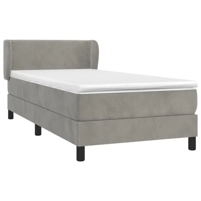 Box spring postelja - Vzmetna postelja z vzmetnico svetlo siva 80x200 cm žamet SL1485