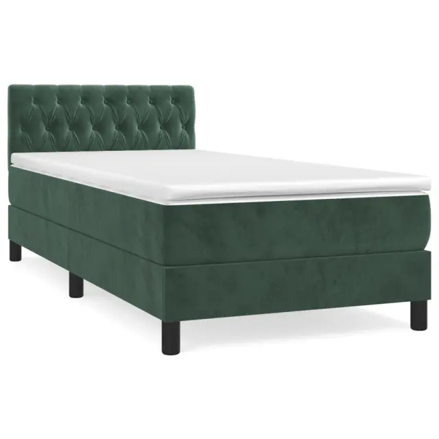 Uporabite to box spring posteljo za uživanje v mirnem spancu! Ponuja maksimalno sprostitev in prijeten spanec. Mehak žamet: Žamet je mehka in razkošna tkanina, ki jo prepoznamo po gostem kupu enakomerno rezanih gladkih vlaken. Žametna tkanina ima značilen mehak občutek, zaradi česar je prijetna na dotik.Praktično vzglavje: Vzglavje postelje je nastavljivo po višini po vaših željah. To vzglavje za posteljo vam zagotavlja odlično oporo za hrbet, ko sedite na postelji in berete ali gledate filme.Ležišče z žepkastimi vzmetmi: Vgrajena individualna žepkasta vzmet je znana po zelo visoki kakovosti, hkrati pa zagotavlja visoko stopnjo vzdržljivosti in prilagodljivosti. Lahko učinkovito absorbira hrup in udarce, ki jih povzročata metanje in obračanje.Srednje trda opora: Posteljna vzmetnica odlično zagotavlja dodatno stabilnost in ravno pravšnjo stopnjo čvrstosti, ne da bi pri tem žrtvovala udobje. Zato je idealna za tiste, ki spijo na hrbtu ali trebuhu.Koži prijazen nadvložek: Zaščita za ležišče ima trpežno in koži prijazno tkanino, zaradi česar je mehka in udobna. Opomba:Zaradi higienskih razlogov vzmetnice ni mogoče vrniti po odstranitvi ali odprtju embalaže.Vsakemu izdelku je priložen priročnik za enostavno sestavljanje.Postelja:Barva: Temno zelenaMaterial: Žamet (100 % poliester), vezan les, konstruiran lesDimenzije: 193 x 90 x 78/88 cm (D x Š x V)Vzmetnica za posteljo:Barva: Bela in temno zelenaMaterial: Žamet (100 % poliester)Material polnila: Žepkaste vzmeti, penaDimenzije: 90 x 190 x 20 cm (Š x D x V)Nadvložek:Barva: BelaMaterial nadvložka: Blago (100 % poliester)Material polnila: PenaDimenzije: 90 x 190 x 5 cm (Š x D x V)Paket vsebuje:1 x Posteljni okvir1 x Vzglavje1 x Vzmetnica1 x Nadvložek